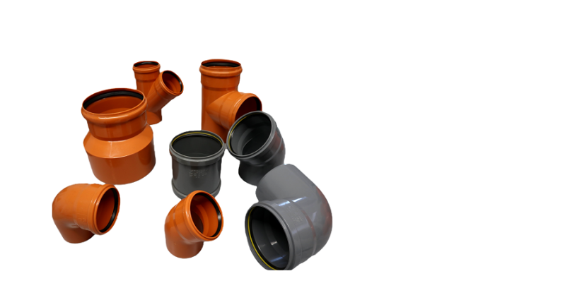 Our PVC fittings both for building and sewer range F/F. Available colors: Red RAL 8023, Grey RAL 7037. Production range: Ø 63 to Ø 400 for building range - Ø 110 to Ø 400 for sewer range.